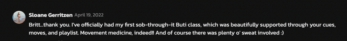 "I've been a loyal subscriber since 2018 and every week there's something new to mix it up. I love watching the practice continue to evolve and all of the teachers feel like my best friends through the screen. Buti for life."